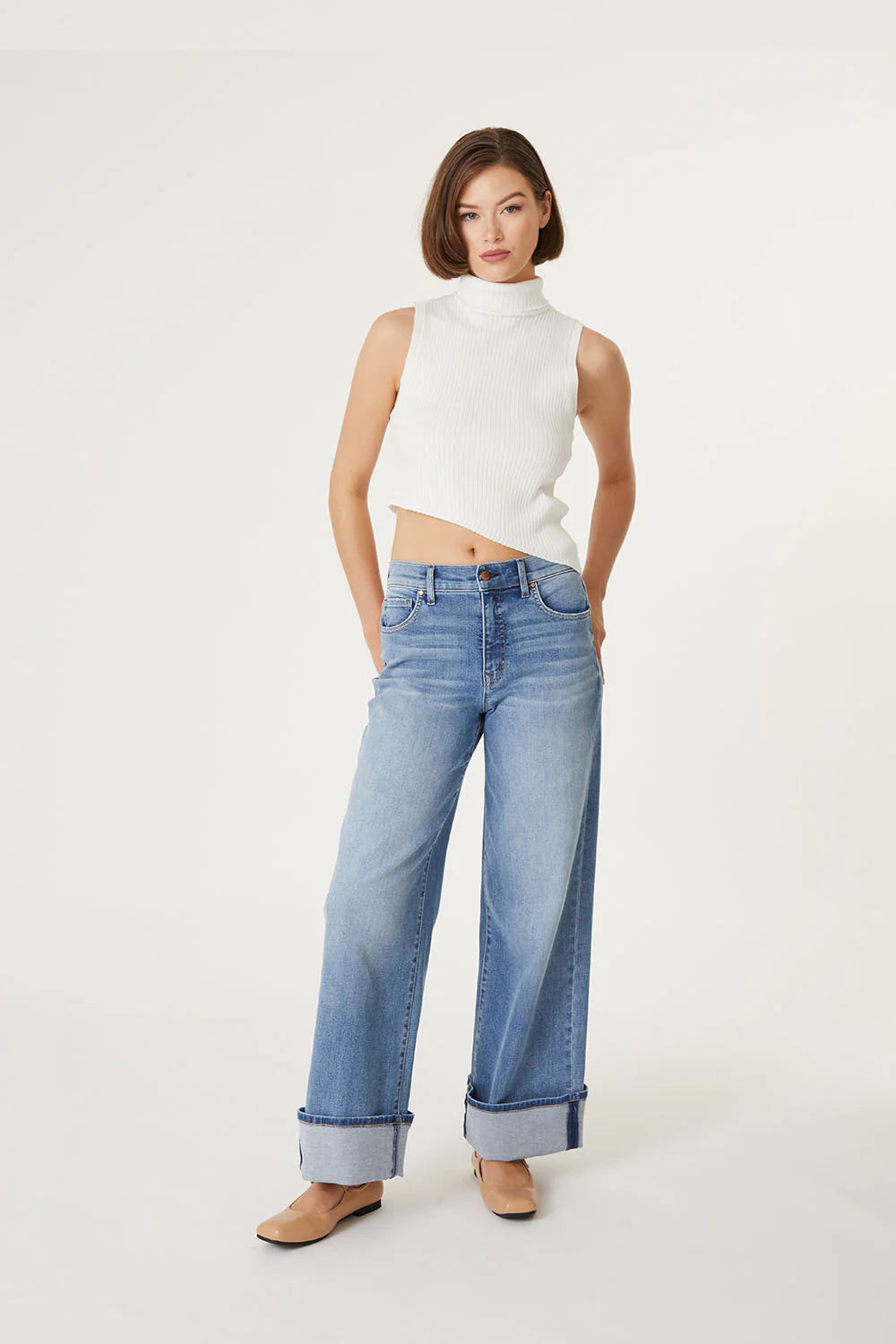 Discover the timeless charm and style of the Tribecca Wide Cuff jean. Featuring a comfortable midrise and a wide leg and wide cuff, these flattering jeans will enhance your figure and create an elegant, retro-inspired look. Sleek and trendy, these jeans will bring you confidence and elevate your style. Express your unique personality with these effortlessly chic jeans.